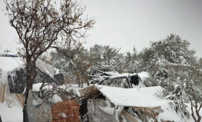 فاقمت العاصفة الثلجية التي ضربت شمال سوريا منذ فجر اليوم معاناة النازحين في المخيمات المنتشرة في مناطق إدلب وريف حلب، وسط ضعف الإمكانيات لدى السكان لمواجهة البرد القارس، بالتزامن مع جهود حكومية يقودها الدفاع المدني لتقديم يد العون وفق القدرات المتاحة.
