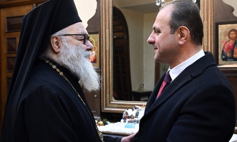 الأمين العام للرئاسة ينقل تهاني الرئيس الشرع للبطريرك يوحنا العاشر بأعياد الميلاد