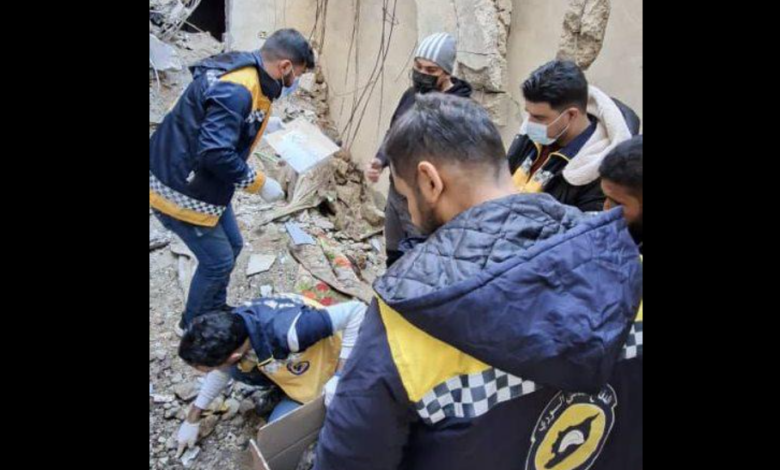 وأوضح الدفاع المدني في بيان، يوم الأحد، أن الرفات تعود لشخصين (رجل وامرأة)، وعُثر بجانبهما على مستندات شخصية، مشيراً إلى أن البناء يقع قرب مشفى ميداني كان قد تعرّض سابقاً لاستهداف بقصف جوي من قبل النظام البائد.