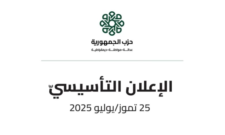 يُعلَن رسميًا يوم الجمعة 25 تموز/يوليو 2025 عن تأسيس حزب سياسي جديد في سوريا، تحت اسم “حزب الجمهورية”، في خطوة يصفها القائمون عليه بأنها “إضافة مدنية إلى المشهد السياسي” في البلاد بعد سقوط نظام بشار الأسد.