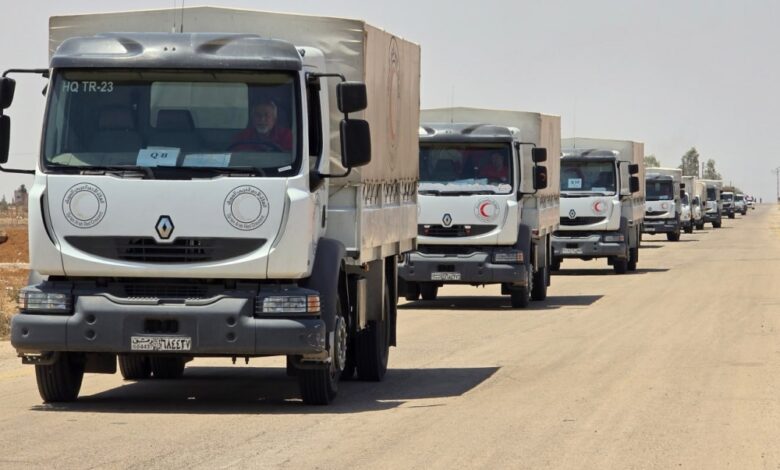 قافلة مساعدات رابعة تدخل السويداء عبر معبر بصرى الشام