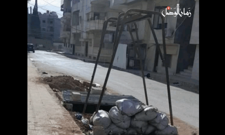 ورصدت “زمان الوصل” فتحة نفق قيد الإنشاء في حي الغربية، بالقرب منها ثلاث فتحات أخرى تُجرى فيها أعمال الحفر حاليًا.