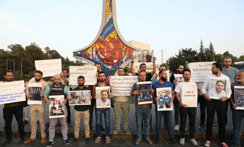أما في إدلب شمال غربي البلاد، فقد شارك صحفيون ونشطاء في مظاهرة مماثلة، عبّروا خلالها عن رفضهم لاستهداف الصحفيين الفلسطينيين.