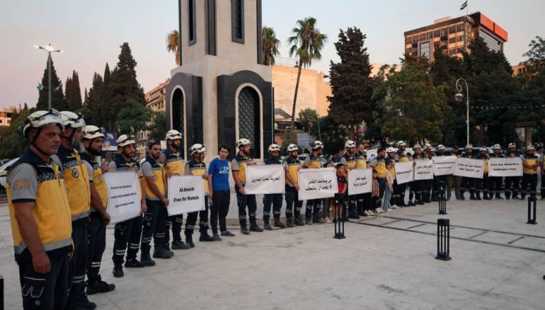 نظم الدفاع المدني السوري، أمس الخميس، وقفات تضامنية في عدد من المحافظات، للمطالبة بالإفراج الفوري عن المتطوع حمزة العمارين، الذي اختطفته مجموعات مسلحة في مدينة السويداء، في 16 يوليو/ تموز الماضي أثناء تنفيذ مهمة إنسانية.