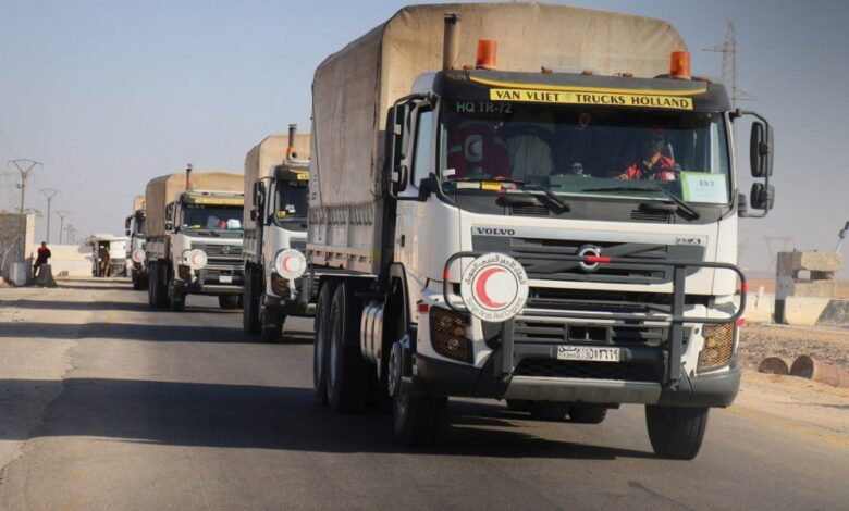 وأوضح المراسل، اليوم 2 أيلول، أن القافلة مؤلفة من 22 شاحنة تحتوي على مواد غذائية وطبية ومياه شرب وطحين.