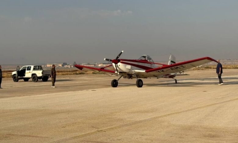 شهد مطار النيرب في محافظة حلب، الخميس 25 أيلول، إقلاع أول طائرة زراعية مخصصة لرش المبيدات الحشرية والأدوية الزراعية بعد إيقافها من قبل النظام البائد قبل 14 عاماً.