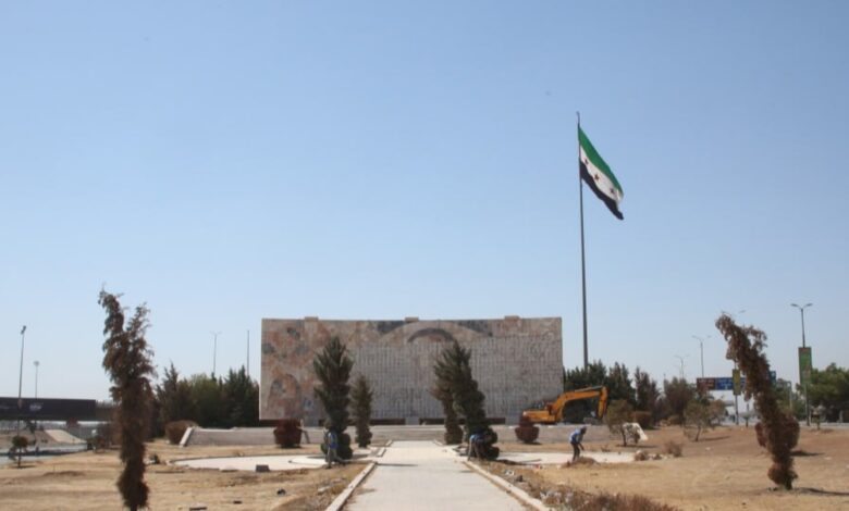 لتحسين المشهد الحضاري.. دمشق تزيل رموز وشعارات النظام البائد من مدخلها الشمالي