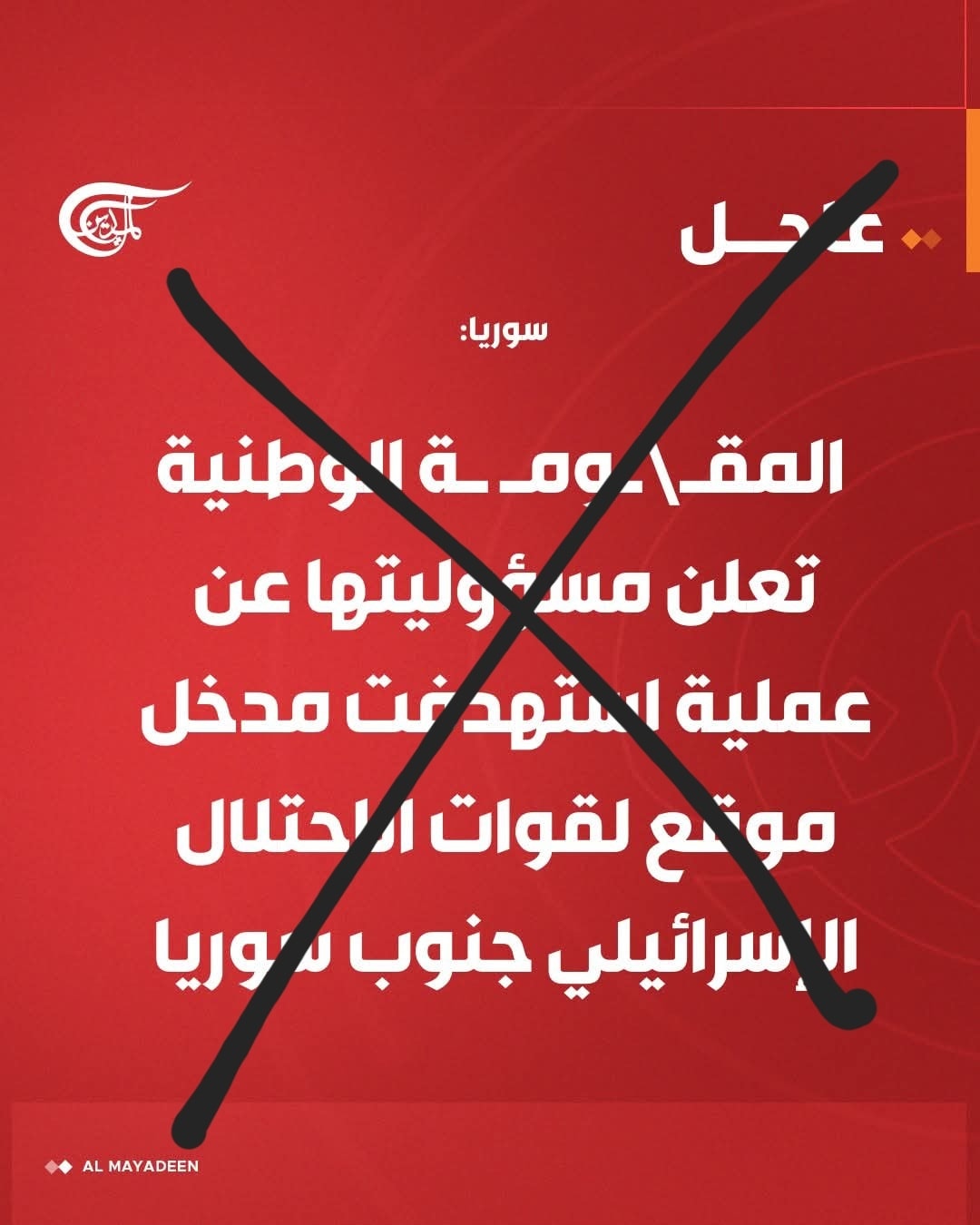 ورغم غياب المعطيات الرسمية، سارعت قناة الميادين إلى تبني رواية نسبت الحادثة إلى ما سُمّيت “كتيبة أحمد مريود” المنسوبة إلى ابن الجولان، متحدثة عن إصدار بيان باسمها.