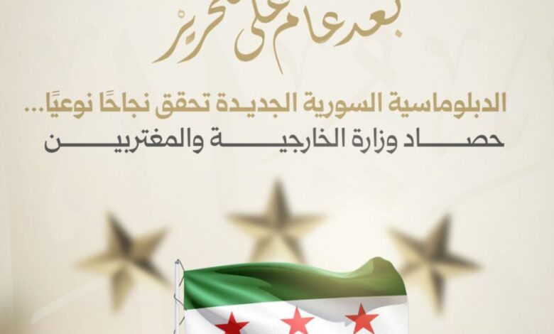 وأكدت الوزارة، اليوم 9 كانون الأول، أن الدبلوماسية السورية الجديدة حققت نجاحاً نوعياً بعد مرور عام على تحرير البلاد، مشيرة إلى أن التحركات الدبلوماسية المكثفة أعادت سوريا كفاعل متوازن في المشهد الدولي.