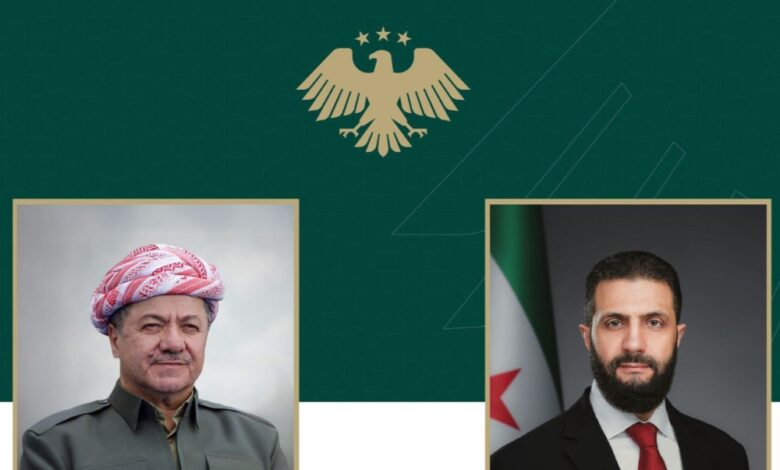 الرئيس أحمد الشرع يبحث هاتفياً مع مسعود بارزاني مستجدات الأوضاع في المنطقة