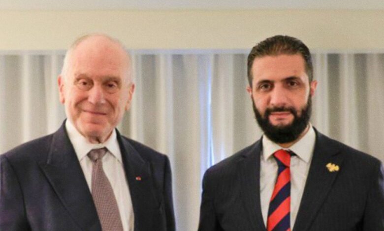 استقبل السيد الرئيس أحمد الشرع، رئيس الكونغرس اليهودي العالمي رونالد لاودر، في مقر البعثة السورية الدائمة لدى الأمم المتحدة في نيويورك، على هامش أعمال الدورة الثمانين للجمعية العامة للأمم المتحدة.