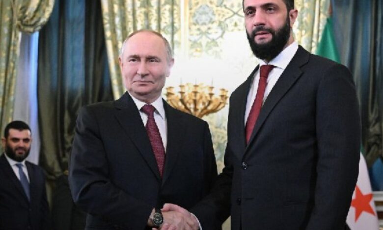 من جانبه، رحّب الرئيس الروسي فلاديمير بوتين بالسيد الرئيس الشرع خلال لقائهما في الكرملين، مشيراً إلى عمق العلاقات التي تربط سوريا بروسيا منذ أكثر من 80 عاماً.