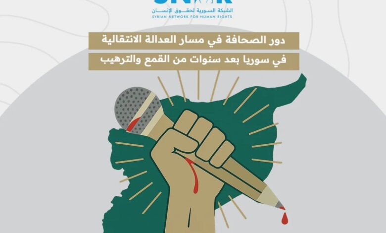 أصدرت الشبكة السورية لحقوق الإنسان تقريراً جديداً بعنوان “دور الصحافة في مسار العدالة الانتقالية في سوريا بعد سنوات من القمع والترهيب”، مؤكدةً على الدور المحوري لوسائل الإعلام في دعم مسار العدالة الانتقالية بالبلاد.