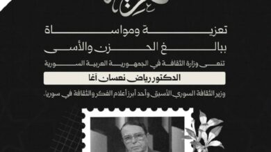 نعت وزارة الثقافة، وزير الثقافة الأسبق رياض نعسان آغا، الذي وافته المنية بعد مسيرة حافلة في ميادين الثقافة والإعلام والدبلوماسية،…