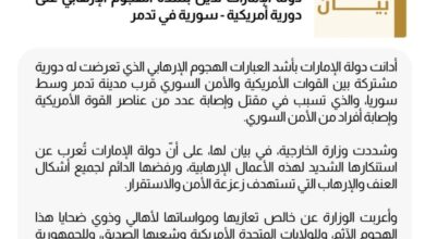 الإمارات تدين الهجوم الإرهابي على الدورية الأمريكية – السورية في مدينة تدمر