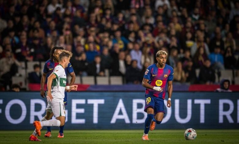 واستغل “البلوغرانا” هفوتين دفاعيتين من جانب إلتشي في الدقائق الأولى، ليتقدم بهدفين مبكرين في أول 11 دقيقة من انطلاق الشوط الأول، حملا توقيع لامين يامال وفيران توريس في الدقيقتين 9 و11.