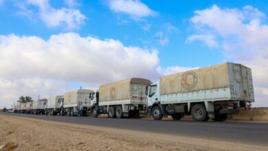 دخول أول قافلة مساعدات إنسانية بعد فتح طريق دمشق – السويداء
