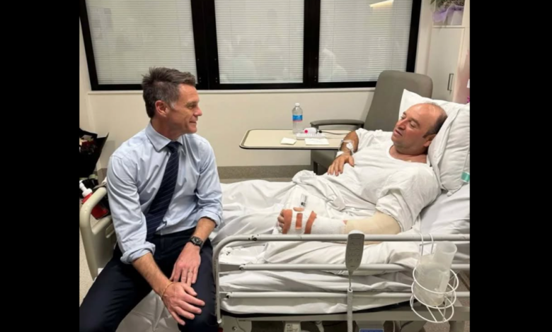وفي سياق متصل، التقى رئيس وزراء ولاية نيو ساوث ويلز، كريس مينز، بأحمد الأحمد أثناء تلقيه العلاج في المستشفى من الإصابات التي تعرض لها جراء الهجوم. كما نشر مينز صورة لأحمد على حسابه في فيسبوك، وكتب معلّقًا: “أحمد بطل حقيقي. شجاعته الاستثنائية الليلة الماضية أنقذت أرواحًا لا تُحصى عندما جرد إرهابيًا من سلاحه، واضعًا نفسه في مواجهة خطر كبير”.