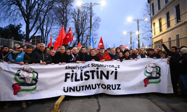 إسطنبول.. مسيرة تضامنية مع فلسطين على جسر غالاطة